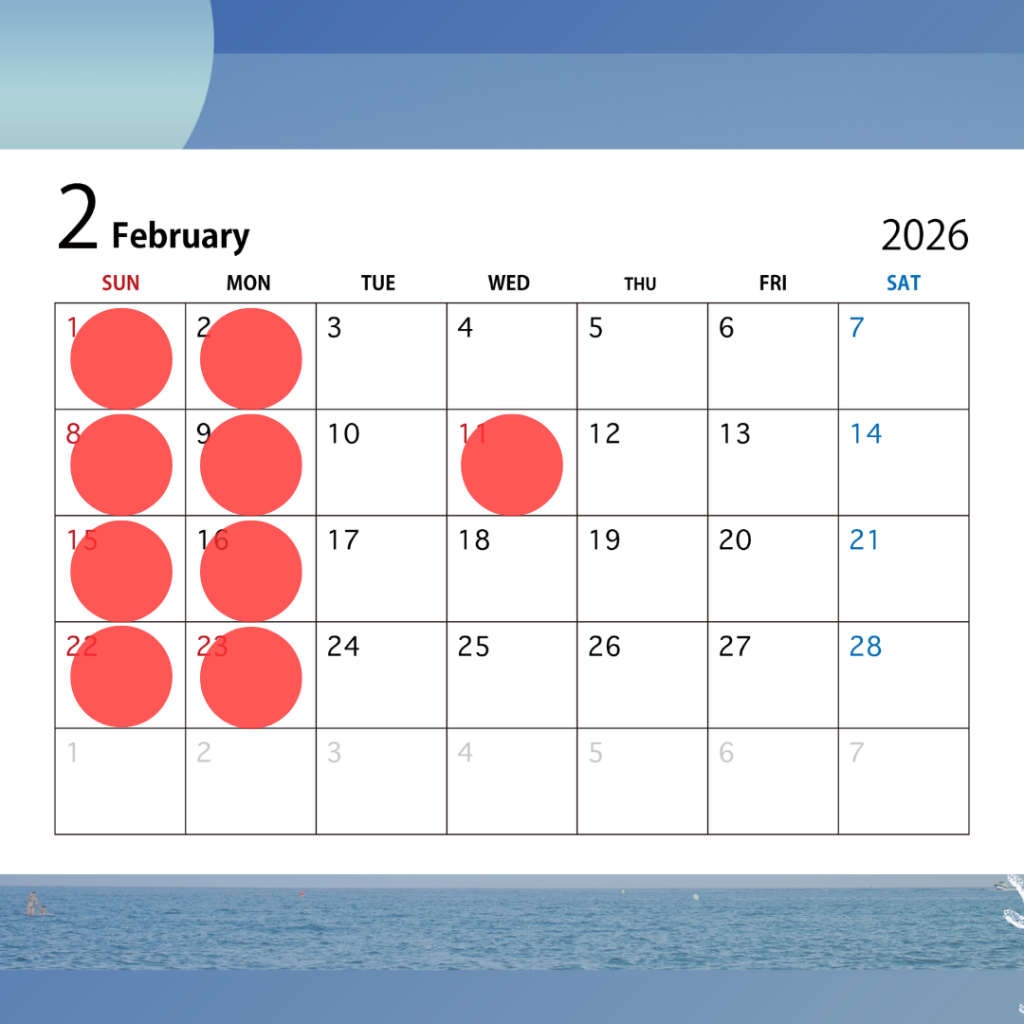 2月の定休日 毎週日曜・月曜日 2月11日(祝)